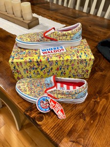 I also got a gift from my youngest brother. If you have to google this, I feel bad for you, but it was “Where’s Waldo”. They were “Where’s Waldo” Van sneakers. They brought back so many memories for me. I hope for you that book is the same, but it puts me in a few awesome places with my grandparents and even my wife’s grandmother. It holds this cool place in my heart. But admittedly I was a bit puzzled what to do with them. I joked in the car on the way home that I can’t picture wearing them. I don’t have the feet confidence that my brother has. He buys the strangest shoes, but they always look so awesome on him. I always am envious of that confidence on him.